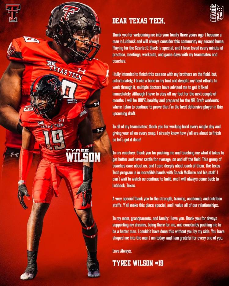 “There are two reputable NFL scouting groups who said if he duplicates what he did last year and adds to it, he could be projected as a mid-first round selection (in the NFL Draft).” Texas Tech HC Joey McGuire